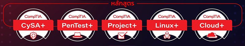 ทั้งนี้ โครงการ Up Skill ผู้เชี่ยวชาญด้าน Cybersecurity ของ สกมช. ในครั้งนี้ ได้มอบโอกาสให้แก่ผู้ที่ต้องการพัฒนาตนเองในด้านการรักษาความมั่นคงปลอดภัยไซเบอร์ ได้ฝึกอบรมพร้อมทดสอบความรู้ความสามารถของตนเอง โดยการสอบประกาศนียบัตรด้านต่าง ๆ ของ CompTIA ในราคาสุดพิเศษเพียง 4,800 บาท จากมูลค่าปกติ 25,000 บาท ซึ่งประกาศนียบัตรด้านต่าง ๆ ของ CompTIA มีเนื้อหาสาระที่สำคัญ ดังนี้