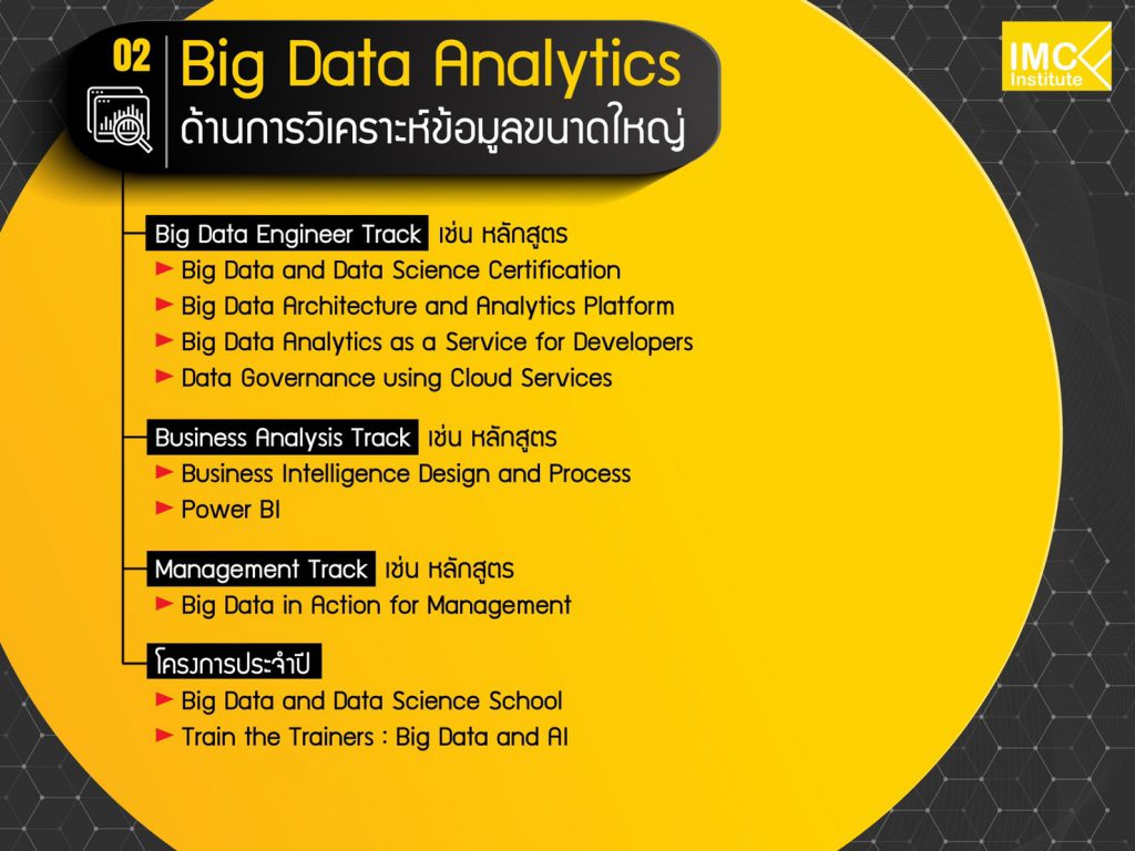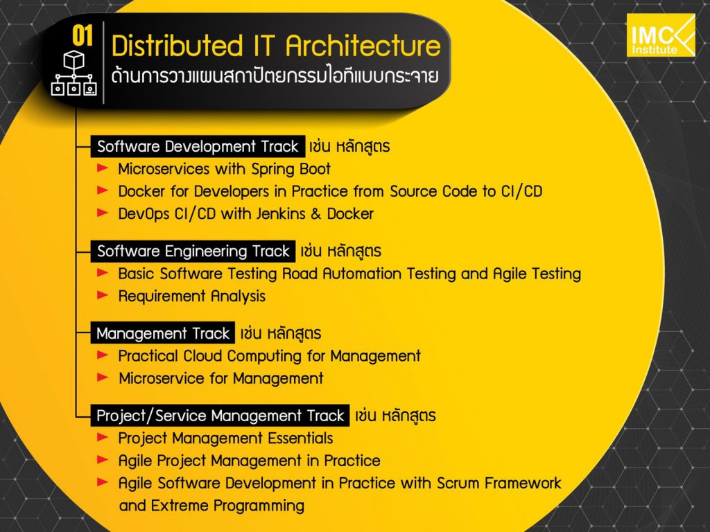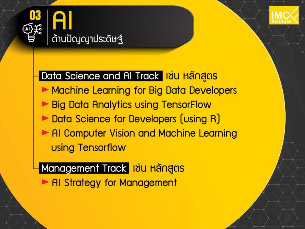 สำหรับปีนี้ สถาบันไอเอ็มซีมีการเปลี่ยนแปลงหลักสูตรตามการวิเคราะห์ของการ์ทเนอร์และทักษะใหม่ตามที่ทาง WEF ระบุไว้ ทำให้มีการเน้นหลักสูตรด้านเอไอ บิ๊กดาต้า Data Science มากขึ้นกว่าทุกปี รวมถึงการวางสถาปัตยกรรมแบบกระจาย การทำไมโครเซอร์วิส ทั้งหมดออกแบบเพื่อให้องค์กรสร้างคนสำหรับการพัฒนาไปสู่อนาคตได้