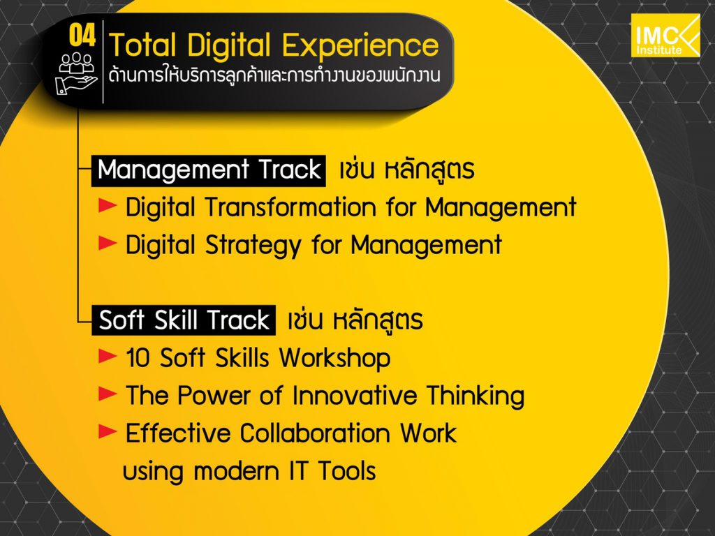 “4 แนวทางนี้จะสอดคล้องกับหลักสูตรที่สถาบันไอเอ็มซีเตรียมไว้สำหรับเทรนด์ปีหน้า จะประกอบด้วยหลักสูตรผู้บริหาร การวางแผน AI และเทคโนโลยีใหม่รวมถึงบล็อกเชน จะมีการให้ข้อมูลเชิงลึกที่ธุรกิจสามารถนำไปปรับใช้ได้”