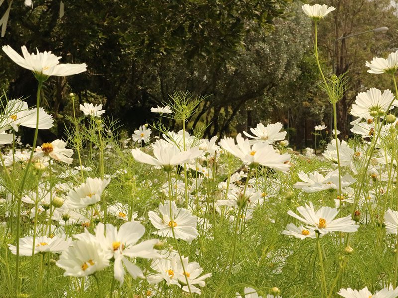 เราปั่นจักระยานมาเรื่อย ๆ ที่สวนสวัสดี เราจะเห็น “ทุ่งดอกคอสมอสสีขาว” ท่ามกลางสายลมเย็น ๆ อีกจุดเช็คอินที่สวยโดดเด่นให้ได้เก็บภาพกันอย่างจุใจ