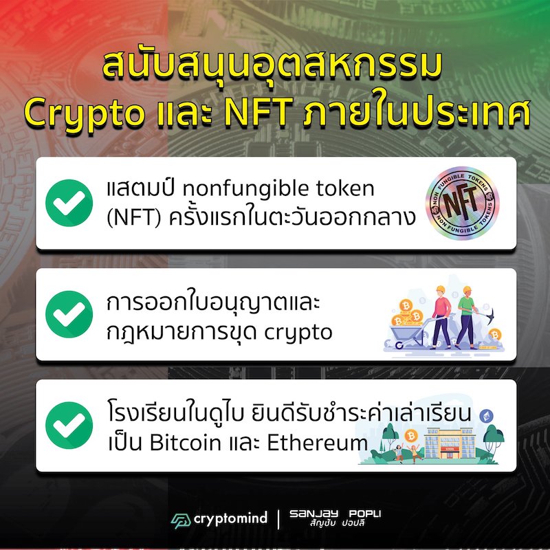 นอกเหนือจากใบอนุญาต crypto แล้ว รัฐบาลสหรัฐอาหรับเอมิเรตส์ยังวางแผนที่จะสร้างและควบคุมอุตสาหกรรมการขุด crypto และ NFTs อีกด้วย