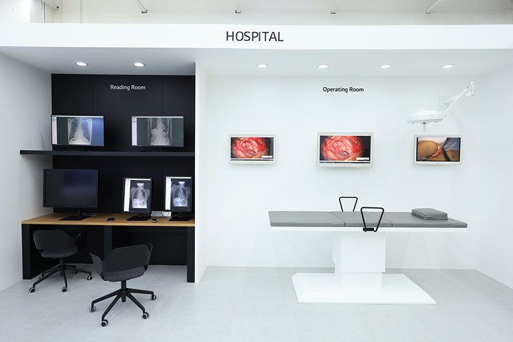 - โซนจอสำหรับห้องควบคุมและงานภาครัฐ ประกอบด้วย จอ LED แบบไร้สาย (LED Bloc) หรือจอแสดงผลที่สามารถนำมาต่อกันได้ตามขนาดที่ต้องการโดยไม่ต้องใช้การเชื่อมต่อด้วยสายเคเบิลระหว่างกล่องจอ มาพร้อม ConnectedCare ซึ่งเป็นโซลูชันบริการคลาวด์ของแอลจี ช่วยตรวจสอบการทำงานจากระยะไกล จึงสามารถรองรับการใช้งานอย่างมีเสถียรภาพ