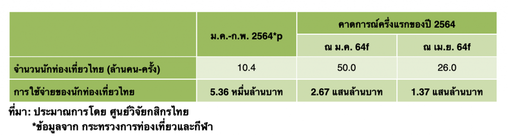 โควิด-19 ที่ยังไม่จบกระทบรายได้ท่องเที่ยวในประเทศในช่วงครึ่งแรกของปี 2564 ต่ำกว่าคาดและในช่วงที่เหลือของปียังมีความเสี่ยงสูง