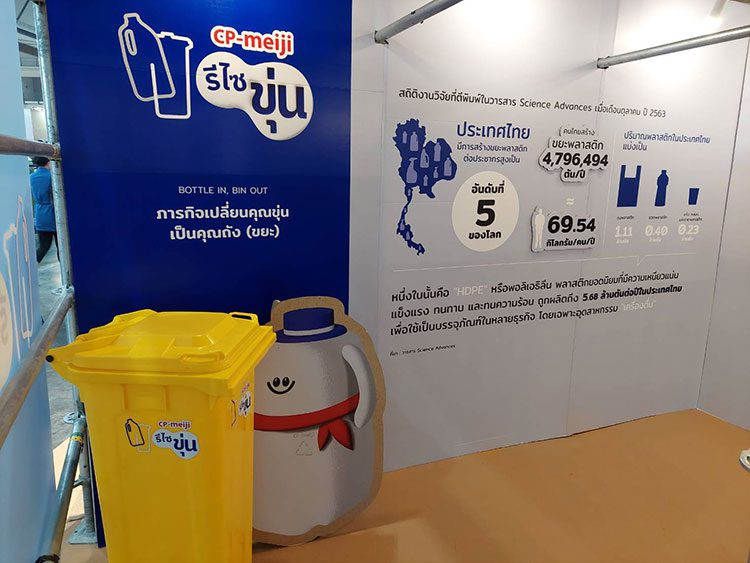 บริษัท ซีพี-เมจิ จำกัด ผู้นำในอุตสาหกรรมนมพาสเจอร์ไรส์ของประเทศไทย เปิดตัวแคมเปญ “ซีพี-เมจิ รีไซขุ่น” ชวนผู้บริโภคส่งแกลลอนนมเมจิ ซึ่งเป็นพลาสติกแบบขุ่น (HPDE) เพื่อนำกลับเข้าสู่กระบวนการรีไซเคิล ตั้งเป้าเก็บ 15,000 แกลลอน แปรรูปเป็นเม็ดพลาสติกเพื่อนำมาผลิตเป็น “ถังขยะ เพื่อแยกขยะ” จำนวน 500 ถัง มอบให้จังหวัดสระบุรี ในไตรมาสสุดท้ายของปี 2566
