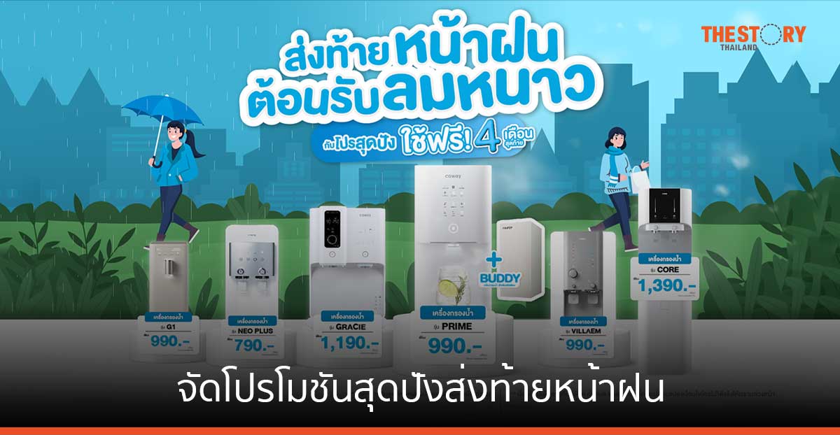 โคเวย์ (Coway) แบรนด์เครื่องกรองน้ำและเครื่องฟอกอากาศจากประเทศเกาหลีใต้ จัดโปรโมชันสุดปังส่งท้ายหน้าฝนต้อนรับลมหนาวตลอดเดือนตุลาคม ยกขบวนเครื่องกรองน้ำ 6 รุ่นสุดฮิตติดตลาดมาให้คุณเลือก Subscribe ในราคาพิเศษ ได้แก่ Coway Neo Plus: 790 บาท, Coway Villaem: 990 บาท, Coway G1: 990 บาท, Coway Prime: 990 บาท, Coway Gracie: 1,190 บาท และ Coway Core: 1,390 บาท พร้อมรับสิทธิพิเศษแบบดับเบิ้ล คุ้มต่อที่ 1 รับฟรี Coway Buddy เครื่องกรองน้ำใช้สำหรับครัวเรือน (สำหรับเครื่องกรองน้ำรุ่น PRIME) และคุ้มต่อที่ 2 ด้วยส่วนลดรายเดือน 4 เดือนสุดท้ายทันทีแบบไม่มีเงื่อนไข โปรดีขนาดนี้ สายสุขภาพต้องรีบไปจัดกันให้ไวก่อนสินค้าขาดตลาด!
