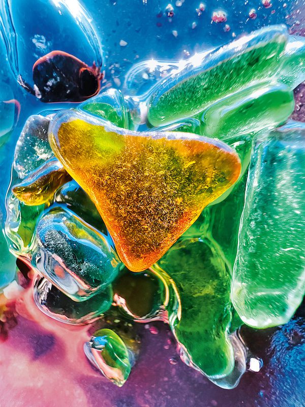 Guido Cassanelli: “Sea Glass เป็นผลึกแก้วสมุทรที่เกิดจากการเดินทางนับพัน ๆ ไมล์ทั่วท้องทะเลจนมาถึงชายฝั่งบนพื้นโลก ผมกำลังเดินชมพระอาทิตย์ตกอันแสนสวยงามอยู่บนชายหาด แล้วก็ตัดสินใจที่จะเก็บผลึกแก้วสมุทรเล็ก ๆ เหล่านี้เอามาเพื่อลองถ่ายภาพแบบมาโครบน iPhone 13 Pro Max ดู แก้วชิ้นที่วางอยู่ตรงกลางดูเหมือนจะมีบางสิ่งที่แปลกประหลาดอยู่ภายใน ทำให้ดูเหมือนกับเป็นอำพัน ซึ่งผมชอบเท็กซ์เจอร์แบบนั้นมาก”
