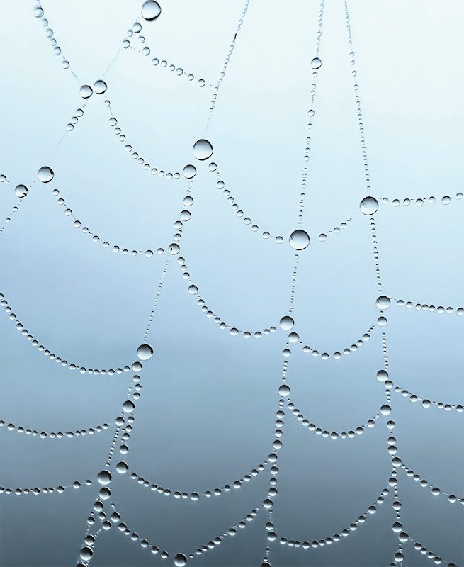 “นี่เป็นตัวอย่างที่ชัดเจนของภาพอันเรียบง่าย มีความเป็นกราฟิก แต่ก็ยังคงความสวยงาม หยาดน้ำค้างที่ดูเหมือนไข่มุกเม็ดเล็กๆ อันสวยงามแต่งแต้มอยู่บนรูปทรงอันซับซ้อนของใยแมงมุม ช่างสวยชวนตะลึงจริง ๆ” — Arem Duplessis
