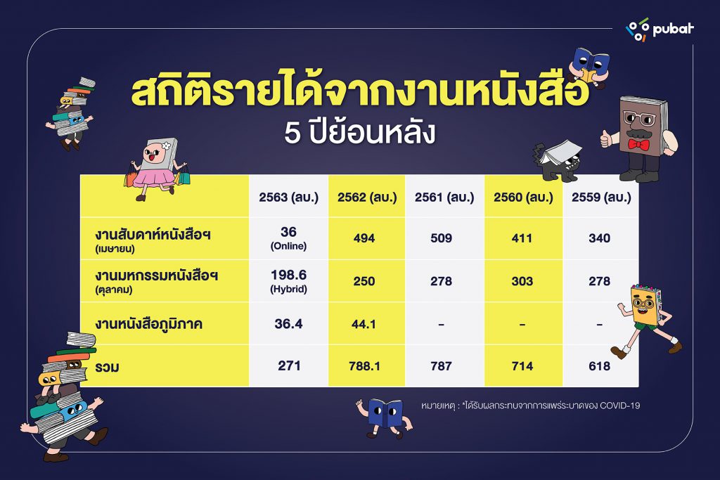 ข้อมูลสำรวจเรื่องช่องทางการซื้อหนังสือในปี 2563 จากผู้ที่เข้าร่วมงานหนังสือพบว่ามีการซื้อจากร้านหนังสือ 81% งานหนังสือ 61% ออนไลน์แบบสั่งเป็นเล่ม 51% และแบบอีบุ๊ค 20% (1 คนตอบได้หลายช่องทาง) โดยกลุ่มที่มาร่วมงานส่วนใหญ่ยังเป็นขาประจำที่มาทุกครั้งที่จัดงาน และค่าใช้จ่ายที่เกิดขึ้นจากการซื้อหนังสือต่อคนในช่วง 500-1,000 บาท มีจำนวนมากที่สุด