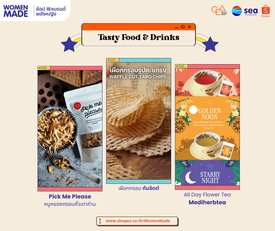 Sea (ประเทศไทย) และช้อปปี้ (Shopee) ซึ่งเป็นธุรกิจอีคอมเมิร์ซภายในเครือ ร่วมกับ สำนักงานส่งเสริมเศรษฐกิจสร้างสรรค์ (CEA) เปิดตัวแคมเปญ ‘Women Made ช้อป 10 แบรนด์พลังหญิง’ ชวนช้อปสินค้าคอลเลคชั่นพิเศษช่วงปีใหม่บนช้อปปี้ พร้อมมอบโปรโมชั่นส่วนลดสุดปัง 15% ตั้งแต่วันที่ 1 มกราคม – 15 กุมภาพันธ์ 2566 เติมความสุขช่วงปีใหม่ให้นักช้อป พร้อมสนับสนุนผู้ประกอบการหญิงชาวไทยให้เติบโตอย่างเต็มศักยภาพ